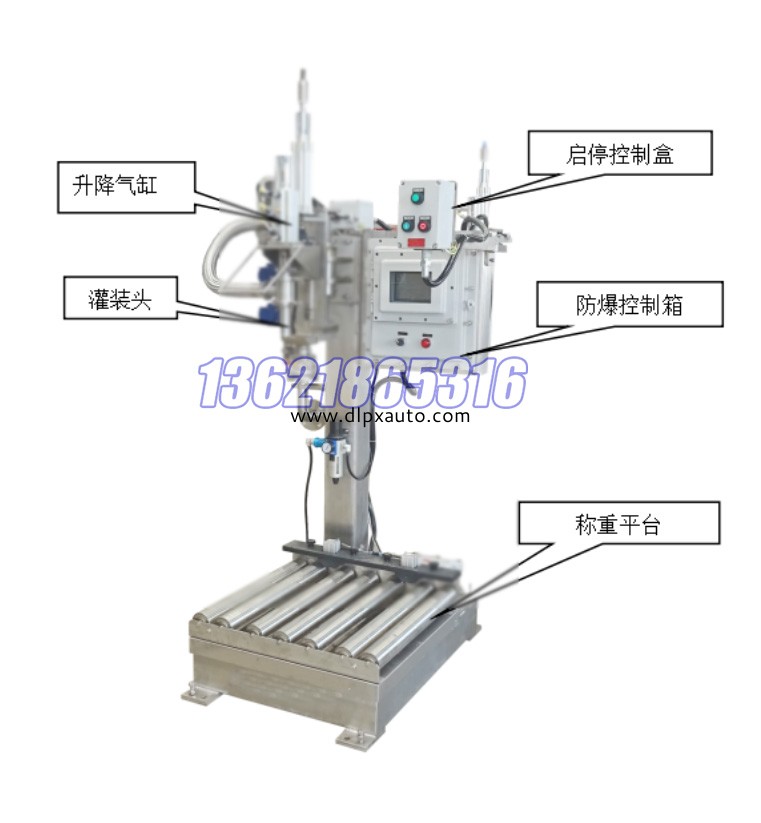 1.1、本機主要由防爆裝置、電控系統、光電檢測、稱重裝置、灌裝裝置等部分組成。