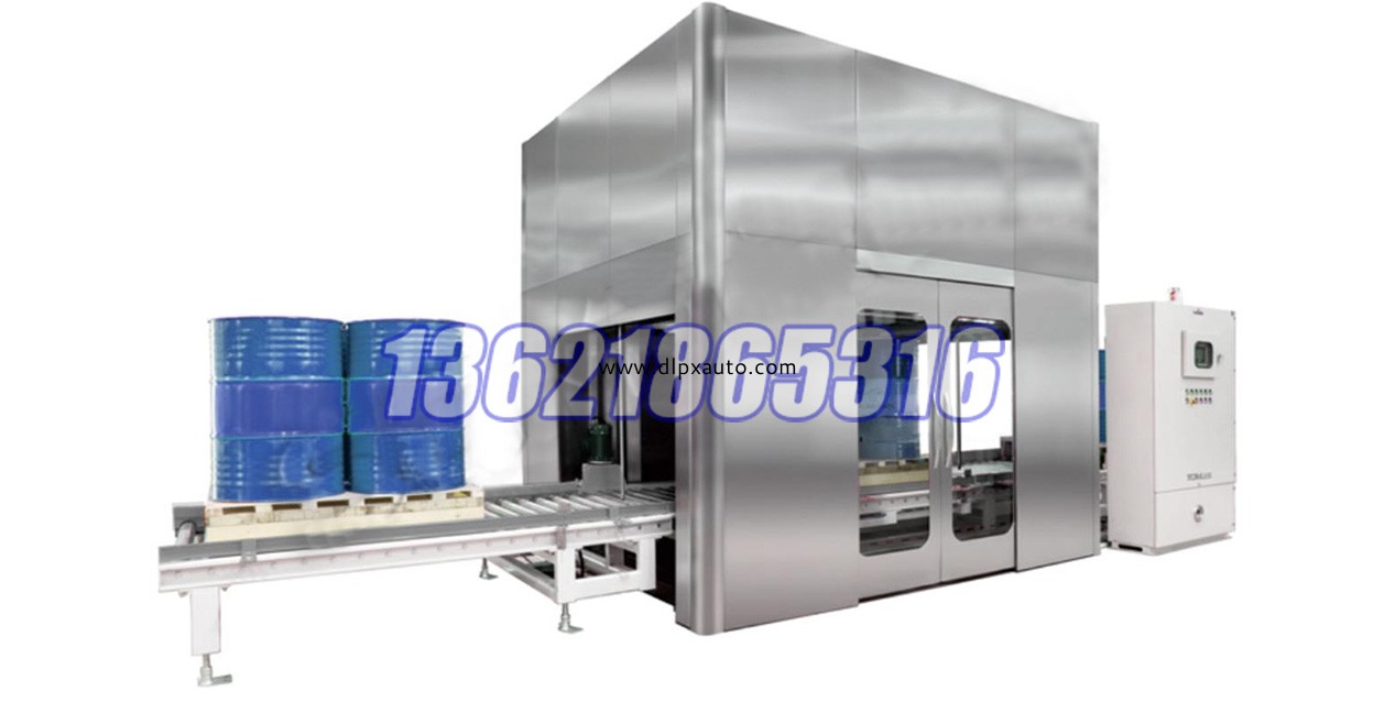 本機專門針對200L(托盤式)/IBC共用的的液體包裝而設計的智能化包裝系統。本設備采用視覺尋口,實現自動開蓋、自動下潛快滿速灌裝、自動接漏、自動封螺紋蓋等全流程自動化的包裝。主機采用環保外框,可視窗,進出桶自動升降移門,灌裝時可形成封閉空間。本機電氣控制部分由PLC可編程控制器、稱重模塊、視覺系統等組成,控制能力強,自動化程度高。具備無桶不灌裝,對不準桶口不灌裝等功能,避免了物料的浪費和污染,使機器的機電一體化得到了完美的表現。