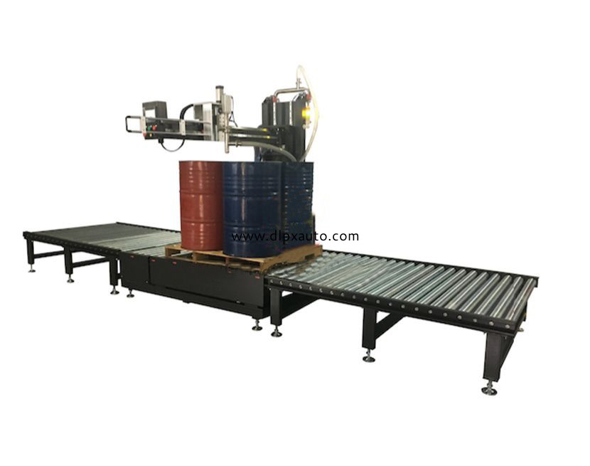 應用案例 高灌噸位稱重式灌裝機,原理是由稱重傳感器平臺在PLC控制下設定計量.是高精度,高技術產品.是集機、電、儀一體化的新型機種,它改變了傳統流量計式灌裝機定量精度及無法對較粘液體的計量缺陷.是文明生產和國家明令規定淘汰杠桿秤后,融稱重與灌裝一體化的理想設備.灌裝時先去除皮重,物料在注入容器時先大量快速灌裝后再慢速小劑量修正計量.操作者只需要將容器放入平臺,桶口對準灌裝咀,此時程序啟