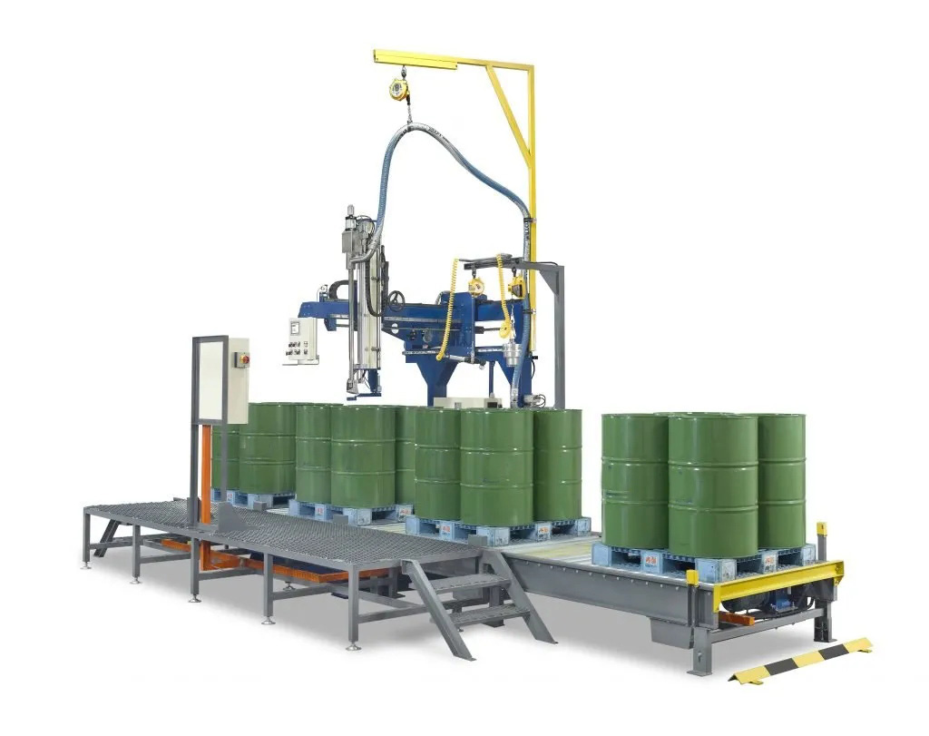 防爆液體灌裝機(jī),自動(dòng)進(jìn)桶-自動(dòng)開(kāi)門(mén)-自動(dòng)關(guān)門(mén)-自動(dòng)灌裝-自動(dòng)出桶,輥軸輸送,灌裝高度可調(diào),適合IBC噸桶、四大桶等各種大桶的液體灌裝,多種出料方式設(shè)置,滿(mǎn)足客戶(hù)一機(jī)多用,多品種灌裝,快慢速灌裝保證灌裝精度,穩(wěn)定性好,減少損耗,節(jié)省成本,減輕工人操作壓力。