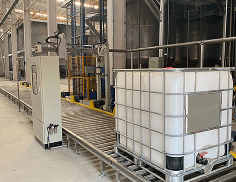 4. 1000L噸桶建材液體灌裝機:這種液體灌裝機適用于易產生泡沫、易爆的液體物料之灌裝,如清洗劑、化工樹脂、環、正、甲酯、易爆等。
