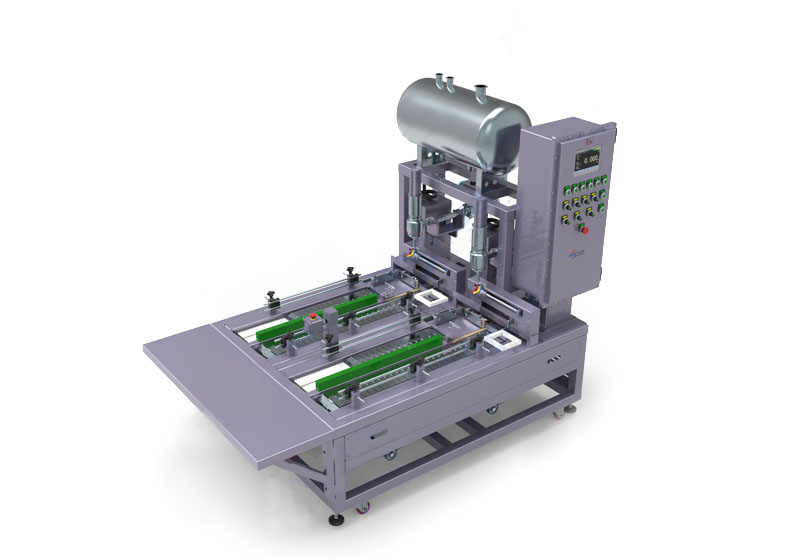 雙頭液體定量灌裝線是一種稱重式計量樹脂灌裝機,適用于500M-1L的灌裝容器,液體灌裝機自動完成灌裝、稱重計量,人工輔助