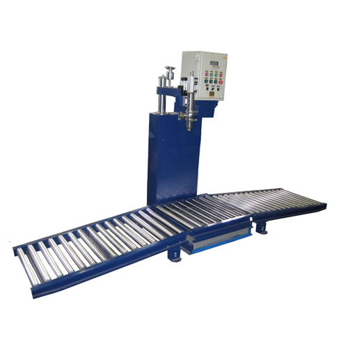 人工將空桶放到秤臺上,,然后點擊啟動按鈕,儀表首先判桶并扣除空桶皮重,灌裝頭插入桶內打開進入快速落料,當達到慢進料設定重量時,自動轉為慢速落料。當重量達到目標值時停止落料,此時灌裝頭復位到初始位置,儀表回皮顯示總重,人工將空桶移出并索蓋,整個動作流程結束。