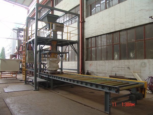 DLPX-25振動式供料包裝機采用電磁振動給料機給料,包裝開始前,用戶將包裝袋掛入自卸式掛袋機構(gòu),稱重平臺上升,到預(yù)定位置后,振動給料機供料高速運轉(zhuǎn)大給料開啟,物料直接流入到噸袋內(nèi),灌裝過程由稱重控制系統(tǒng)控制振動給料機進行快、中、慢三級給料,達到預(yù)設(shè)的重量值時振動給料機停止給料,設(shè)備自動松開夾袋和吊帶,自動輥道輸送系統(tǒng)將噸袋送至待運走位置由叉車叉走,人工上袋進行二次包裝。為了適應(yīng)多種尺寸包裝袋,設(shè)備掛袋機構(gòu)的高度可在1米至2米內(nèi)進行任意調(diào)整,包裝過程中無粉塵溢出、稱量精度高、操作簡單以及維護方便等特點。