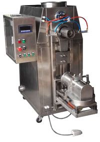 將閥口包裝袋套在加料嘴上,按動“允加”按鈕,這時壓袋氣缸開始工作并壓住袋口,控制器將包裝袋重量自動去除,破拱電機緩慢轉動,保證下料暢通。加料螺旋高速轉動迅速將物料灌入袋中,隨袋中空氣一起溢出的粉塵通過吸塵器由除塵器吸走,振動裝置同時啟動將托盤上袋中物料振實充滿袋角。待加料快到設定值時,加料螺旋進行減速慢加,到設定值時,加料停止。誤差<0.3%。這時壓袋氣缸松開袋口,將包裝袋放在皮帶輸送機上及時送出。