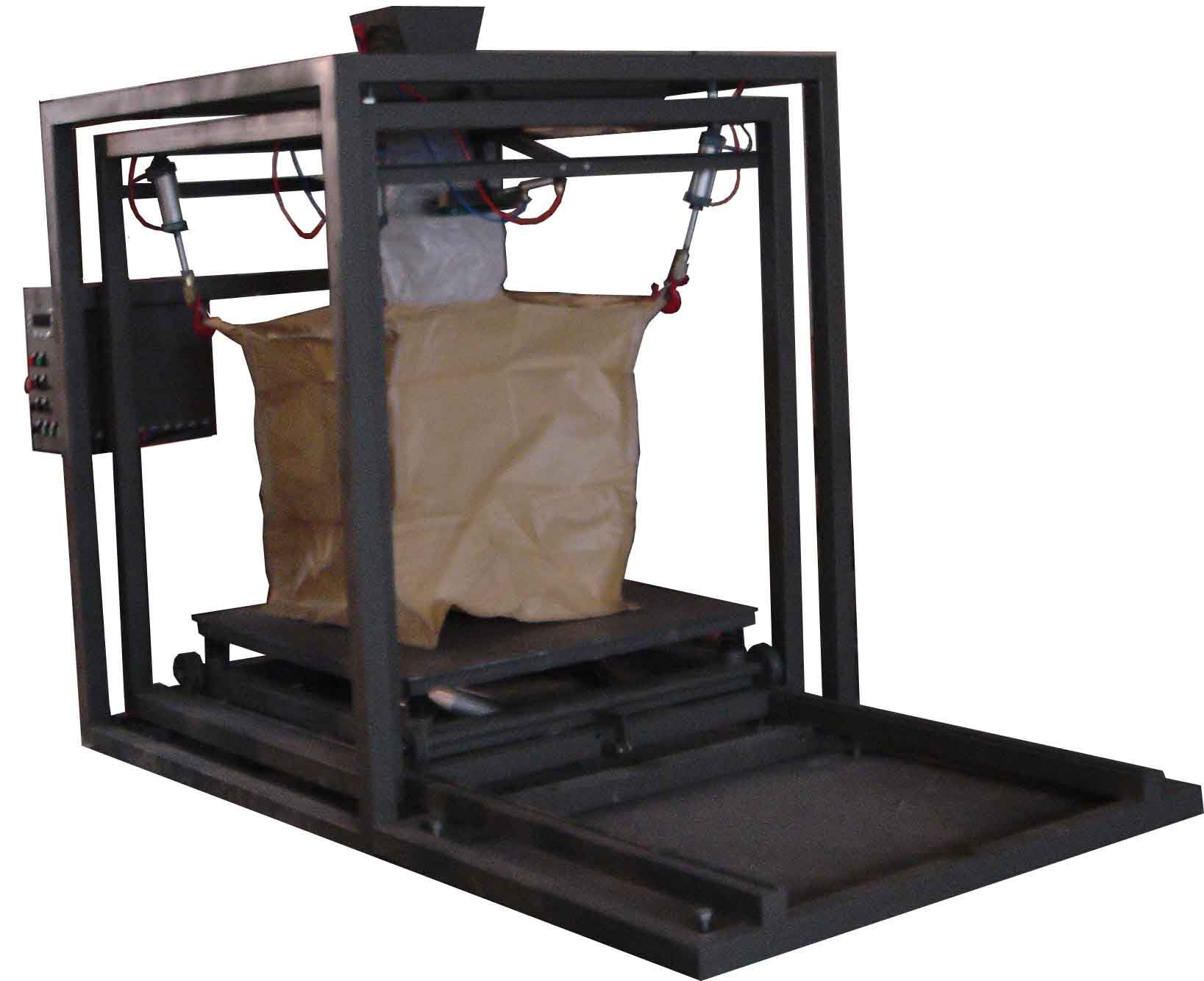 將噸包裝袋套在加料嘴上,將包裝袋四角掛在氣缸上,按動“允加”按鈕,這時壓袋氣缸開始工作并壓住袋口,氣缸將包裝袋四角撐開,控制器將包裝袋重量自動去除,加料螺旋高速轉動迅速將物料灌入袋中,隨袋中空氣一起溢出的粉塵通過吸塵器由除塵器吸走,待加料快到設定值時,加料螺旋進行減速慢加,到設定值時,加料停止。誤差<0.3%。這時壓袋氣缸松開袋口,氣缸將包裝袋四角松開,將包裝袋送至皮帶輸送機上及時送出。